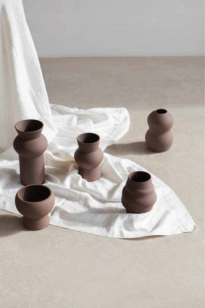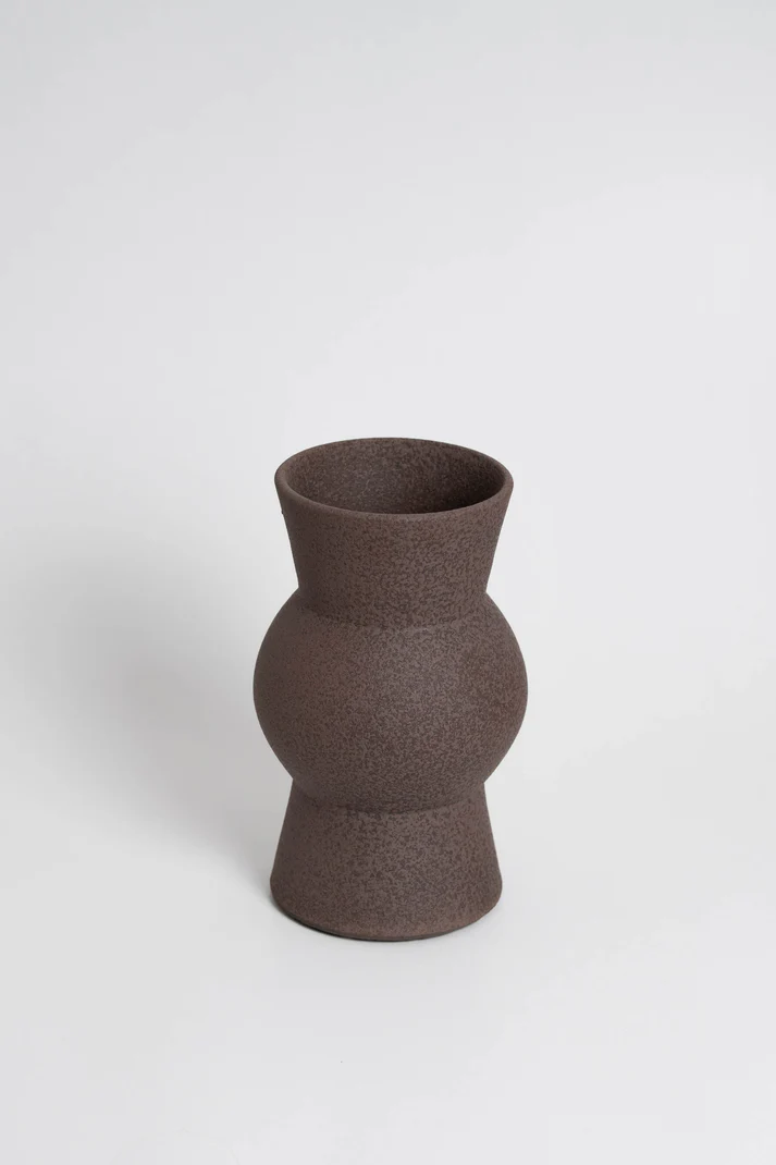 The handmade Holden Glazed vase impresses with its unique, brown-colored texture and a design inspired by volcanic elements. The sophisticated glazed ceramic vase adds an elegant and stylish touch to any room, harmoniously combining modern and natural accents. Perfect as a decorative piece to add character and timeless elegance to your home.